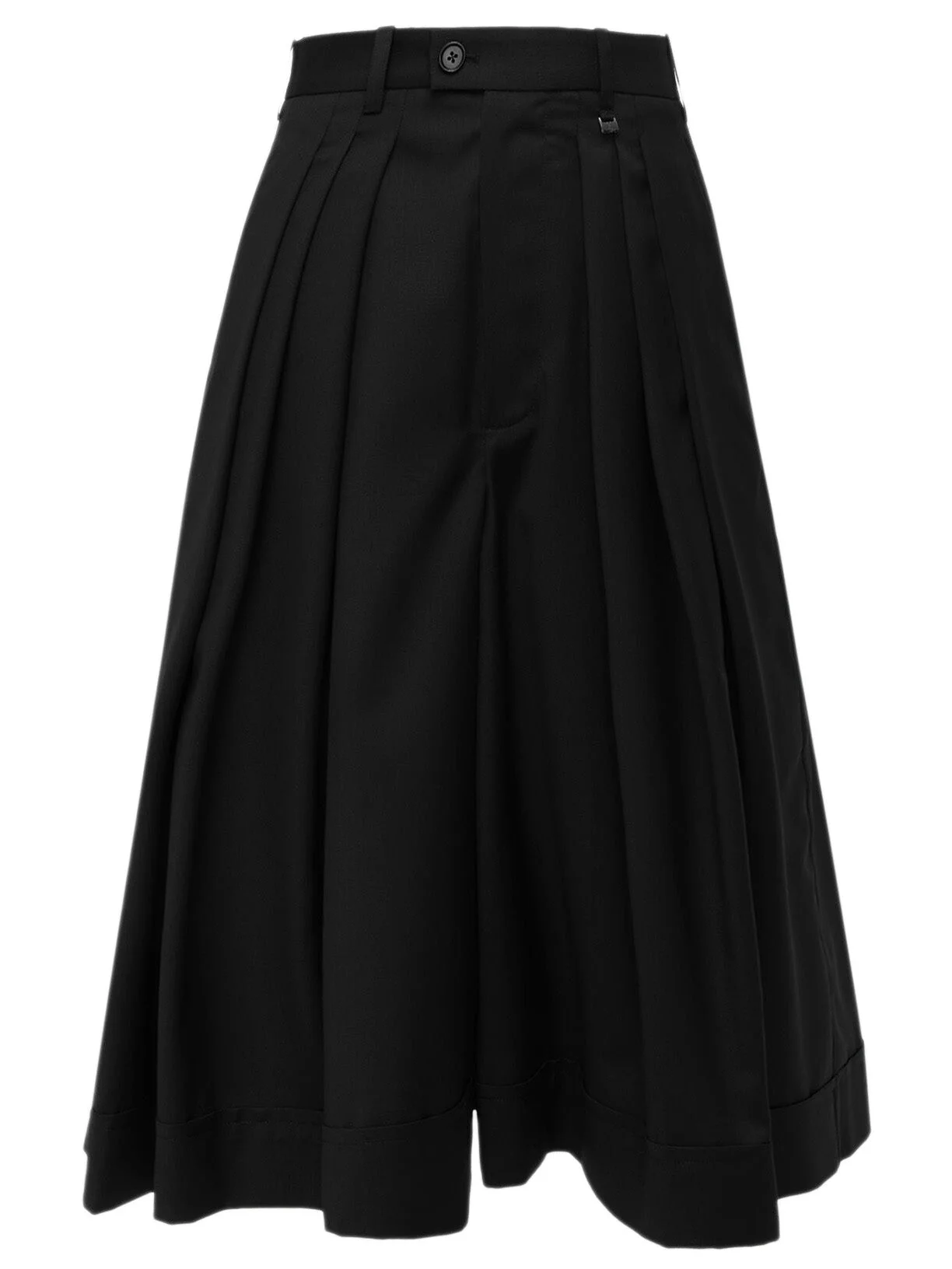 Pleated Culottes in Black from Vivienne Westwood Highlights - black - features a mid-rise waistband - fit true to size, take your normal size - unisex design - concealed side pockets - front zip - pressed pleats - dropped crotch - tonal stitching - model is 5'9/177cm and is wearing a size S Made in Italy Designer ID: 3F01000C-W01A2 Colour ID: N401, BLACK Materials 100% Virgin wool