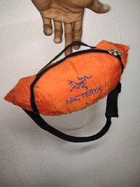 Preloved used arcteryx nylon waist bag Well used still in good condition with some defect at zip and stain traces of used item Puller zipper was broken and already modifier it Washtag was missing Please refer picture first for more details about item WASHTAG OR MADE IN WAS MISSING