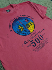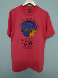 Vintage 90s Screen Stars Best COLUMBUS QUINCENTENNIAL Single stich 50 Cotton 50 Polyster Made in USA Pit 20" Lenght 28" Condition details refer picture