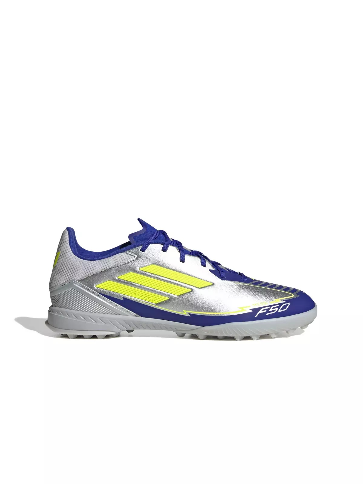 F50 League Messi Turf "Silver Metallic/Solar Yellow/Lucid Blue" Unisex Soccer Shoe