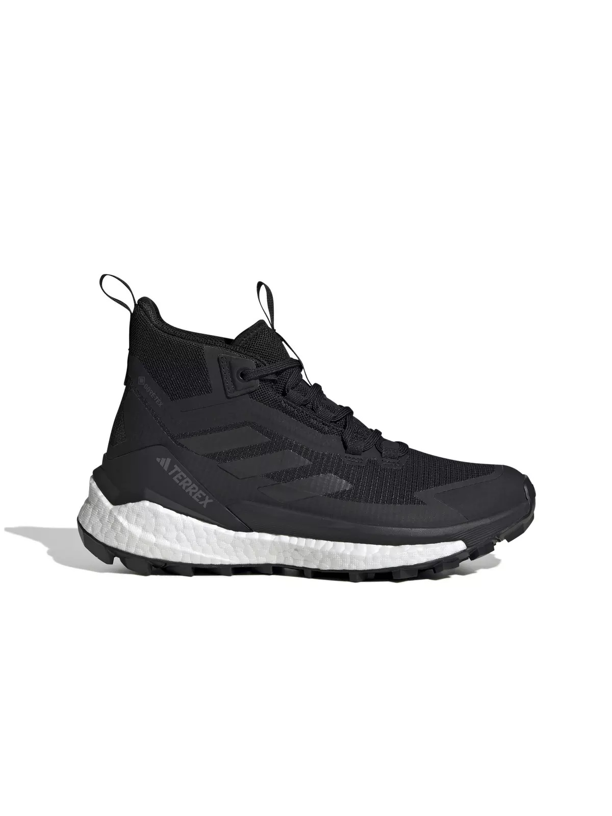 - Regular fit - Lace closure - Mesh upper with seamless overlays and moulded toe cap - Gusseted tongue and GORE-TEX membrane - External heel clip and EVA stabilisation frame - BOOST midsole - Midsole drop: 10 mm (heel: 30 mm / forefoot: 20 mm)