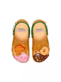 - Incredibly light and fun to wear - Two oversized doughnut and Hot Now Jibbitz charms - Includes two strawberry and two chocolate 3D PVC toe caps - Pivoting heel straps with Krispy Kreme logo and doughnut Jibbitz charms - Designed to enhance breathability - Easy to clean and quick to dry - Iconic Crocs Comfort: Lightweight. Flexible. 360-degree comfort