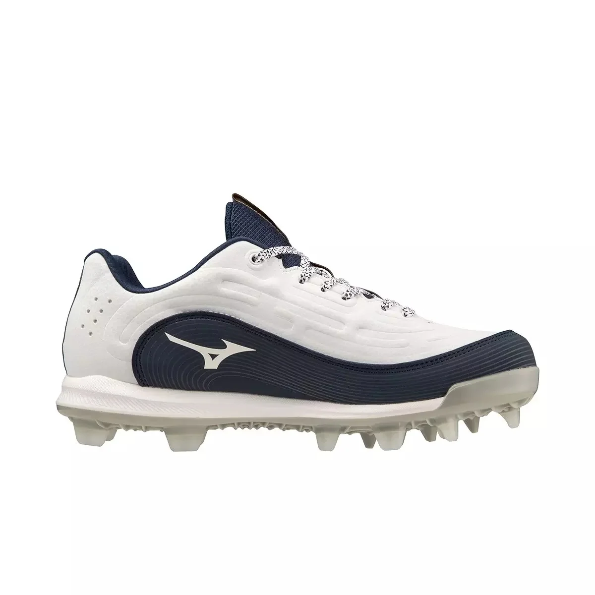 - Mizuno C-Flex Outsole: Mizuno's next innovation in Outsole technology using a lightweight, rib construction, as well as a symmetric stud arrangement for enhanced stability, flexibility, and traction, while also providing increased comfort with reduced stud pressure. - Translucent I-Shaped TPU Studs: Provide increased traction on multiple surfaces - Padded Bootie Tongue: For superior fit and comfort. - Mizuno WAVEA®: The Mizuno WAVEA® plate disperses energy from impact to a broader area providing a stable platform and a superior cushioning. - Jennie Finch Collection: Created in collaboration with Jennie Finch with the softball player's specific needs in focus. - U4icX Strobel Lasting Board: Ensures a comfortable underfoot feel.