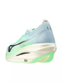 - MIZUNO WAVEA®: The MIZUNO WAVEA® plate disperses energy from impact to a broader area providing a stable platform and a superior cushioning. - Internal Support Strap: Securely holds mid-foot area. - Eco Friendly Materials: Recycled materials - Triple Shoelace Loop: Keeps tongue in correct position while running. - Engineered Mesh Upper: Both breathable and durable for high performance. - G3 Outsole: Lightweight G3 Outsole reduces weight and increases traction for a grippy and efficient ride. - Smooth Speed Assist: MIZUNO's signature geometry that is designed for maximum performance. The significant heel bevel encourages an efficient midfoot landing, the midfoot contact point supports the calf and the aggressive forefoot rocker delivers a smooth and propulsive transition. - Carbon Fiber Infused Nylon MIZUNO WAVEA® Plate: Carbon infused Wave Plate provides maximum resilience to stabilize the midsole, and offers MIZUNO’s signature stable ride thanks to the Wave geometry. - MIZUNO ENERZY LITE - Category: Speed - Drop: 4mm - Stack Height: Forefoot 36mm / Heel 40mm