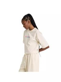 - Short sleeves offer a casual and airy fit. - Cropped silhouette highlights the waistline with modern style. - Multi-color emblem adds an eye-catching accent. - Breathable cotton ensures everyday comfort. - 100% cotton ensures soft feel and natural breathability. - Machine wash maintains fabric shape and color.