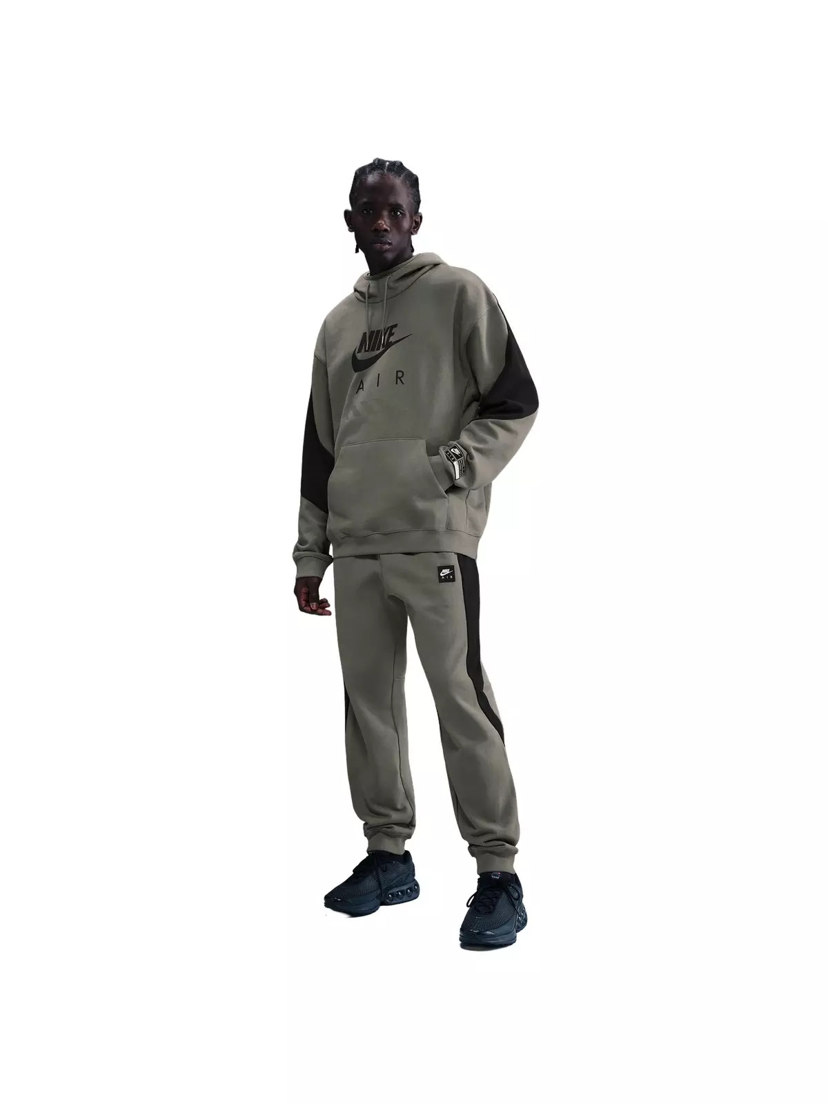 - Designed to feel relaxed through the seat and thighs with a slight taper towards the ankle. - A vertical zippered back pocket pairs with side hand pockets for convenience. - Nike Air flag label and silicone patch - Elastic waistband with external drawcord - Body: 100% cotton. Rib: 96% cotton/4% spandex. - Machine wash - Imported