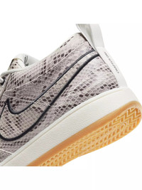 - The Air Python is a regular in Book’s rotation of lifestyle high heat. Debuted in 1987, the Python caught fire for its elevated lux, faux reptilian skin and Swoosh logo-less upper. This special design is rooted in a fitting desert theme. An allover snakeskin print is elevated by the python texture, making for another future Book classic. - The pull tab at the heel is inspired by a book spine, with numbers referencing chapters in an ongoing story. - A top-loaded Air Zoom unit in the heel provides responsive speed when taking off in the open floor and coming to sudden halts. - Soft, responsive Cushlon foam can help you keep running and cutting in comfort. - The multidirectional, herringbone-like pattern gives you sticky traction that’s ideal for lateral cuts and quick changes in movement. - A top-loaded midfoot strong plastic plate helps keep your foot stable when making sudden movements. A strong plastic sidewall cage adds even more stability.
