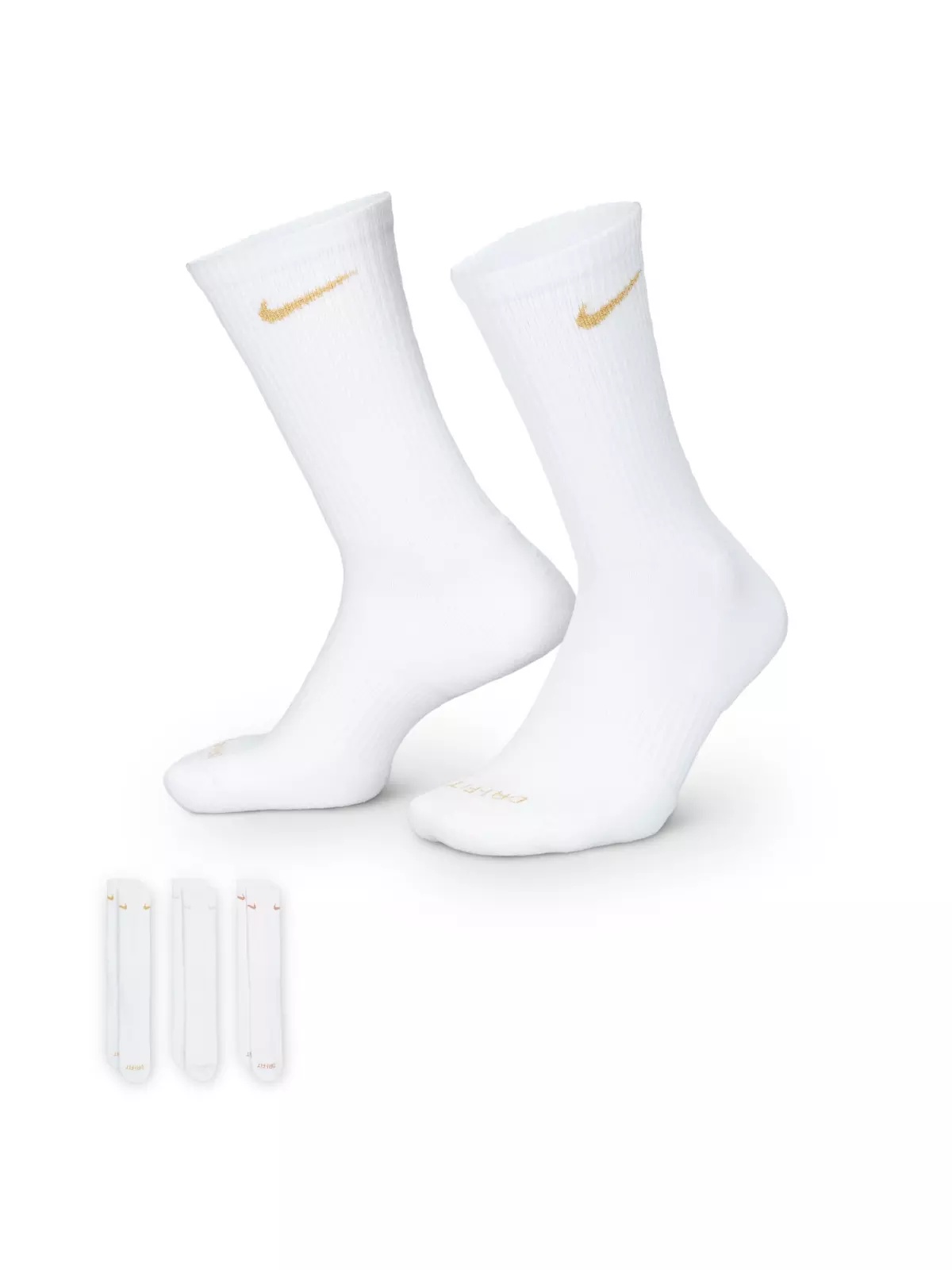 - Cushioning under the forefoot and heel helps soften the impact of your workout. - Dri-FIT technology helps your feet stay dry and comfortable. - Band around the arch feels snug and supportive. - Breathable knit pattern on top adds ventilation. - Reinforced heel and toe are made to last. - Fabric: 62-69% cotton/29-36% polyester/2% polyurethane - Note: Material percentages may vary depending on color. Check label for actual content. - Machine wash - Imported