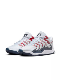 - The stark whites, dark blues and renowned blacks nod to a nostalgic team and player, who lit up KD’s TV screen with spins, slams and silky jumpers. - A big forefoot Air Zoom unit offers a different level of velocity, either on the run or out of a standstill position. It offers snappy pop when the game revs up. Springy foam helps you stay fresh 'til the final buzzer. - The bottom layer of the upper has Nike Air cushioning at the heel to add a pop in your step. We put a strong plastic piece at the forefoot to help keep you supported. - The outsole pattern looks like a topographical map, with an array of contoured ridges that bend and deflect in multiple directions to provide traction for every move. - A supportive piece under the arch adds stability.