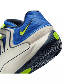 - A big forefoot Air Zoom unit offers a different level of velocity when exploding, either on the dead run or out of a standstill position. It offers a different level of snappy pop when the game revs up. Our latest version of Cushlon foam adds a soft, comfortable sensation and freshness for four quarters. - The bottom layer of the upper has Nike Air cushioning at the heel to add a pop in your step. A strong plastic plate directly underfoot conforms as you flex. It works with the forefoot Air Zoom unit to give you a snappy first step while also providing support and stability. - A tough plastic cage helps keep you upright and offers firmness on both sides of your foot.