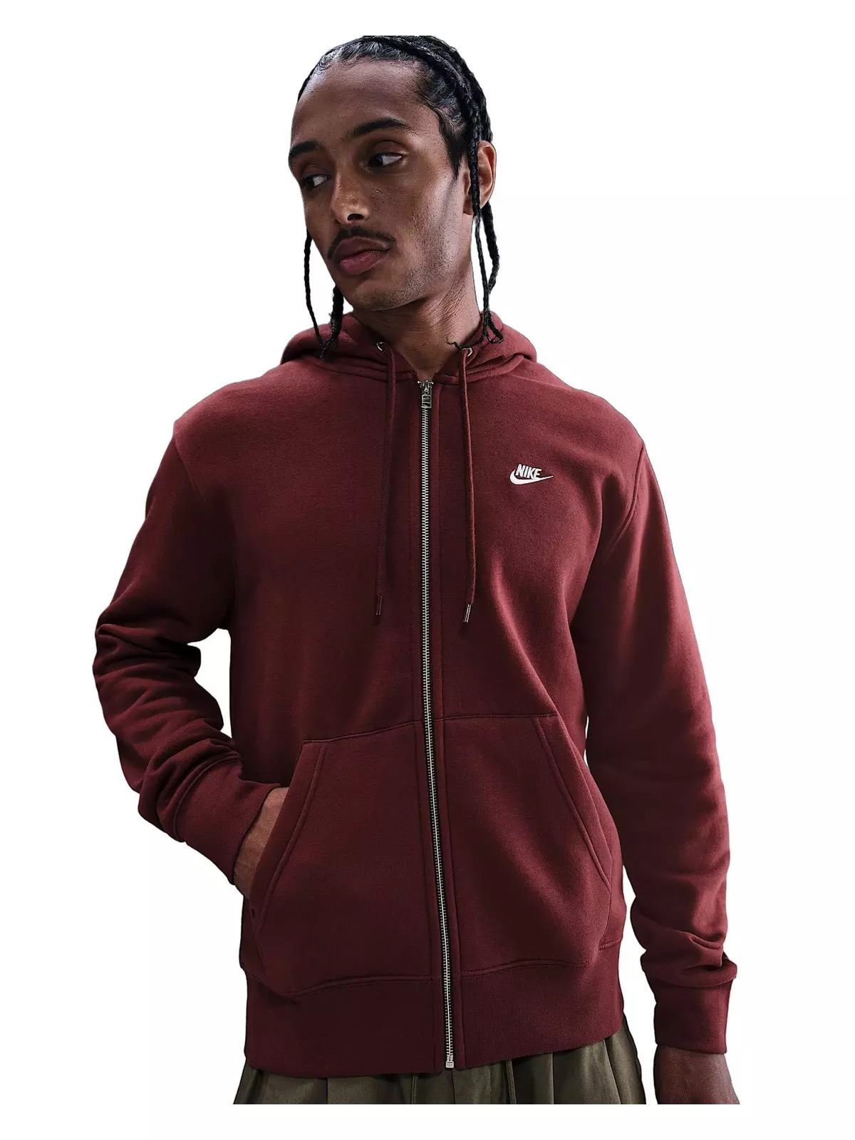 - Our midweight brushed fleece feels extra soft on the inside and smooth on the outside, helping you stay cozy while keeping its structured shape. - The standard fit is designed to feel relaxed through the body for easy layering. - Double-layer hood has a round braided drawcord to make finding the right fit a cinch. - Embroidered Nike Futura Logo - Divided pouch pocket - Ribbed hem and cuffs - Metal Zipper - Body: 67-80% cotton/20-33% polyester. Hood lining: 67-80% cotton/20-33% polyester. - Material percentages may vary. Check label for actual content. - Machine wash - Imported