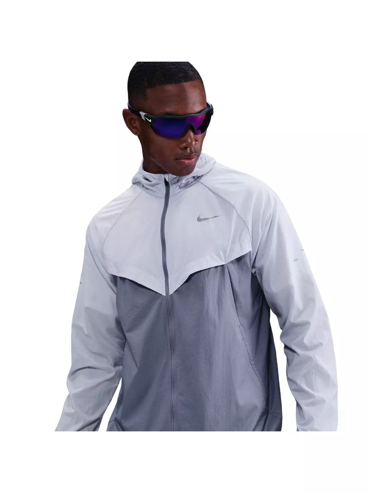 - The smooth nylon shell is super lightweight, with a water-repellent finish to help you stay dry in wet weather. It also blocks UV rays, giving you coverage for sunny conditions. - The jacket packs down into its side pocket for convenient storage on the go. - Vents on the front and back of the jacket provide extra breathability in key areas. Mesh-lined pockets help keep your essentials dry. - Raglan sleeves are designed to help reduce underarm chafing and allow for a wider range of motion. An updated adjustable hood design gives a secure, personalized feel. - Reflective pills on the back - Reflective Swoosh logo - Not intended for use as Personal Protective Equipment (PPE) - This product provides UVA and UVB protection from the sun in the areas covered by the garment. To protect exposed areas, the use of good quality sunscreen is recommended. - Body: 100% nylon. Mesh: 100% polyester. - Machine wash - Imported