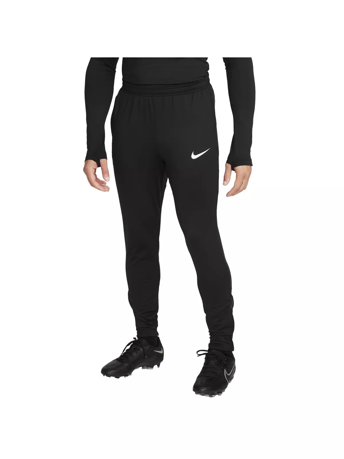 - Nike Dri-FIT technology moves sweat away from your skin for quicker evaporation, helping you stay dry and comfortable. - Slightly textured stretch-knit fabric is lightweight and breathable. - Zippered side pockets help keep your soccer essentials secure. - Elastic waistband with drawcord provides a fit that feels just right. - Zippered cuffs make the pants easy to take on and off over your shoes. - Gusset design provides extra mobility. - Ribbed panels - Body: 91% polyester/9% spandex. Panels/Mesh: 100% polyester. - Machine wash - Imported