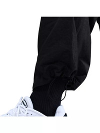 - The oversized fit is extra roomy through the seat and legs. - Articulation at the knees allows ease of movement while serving a distinct Nike Tech aesthetic. - Lower legs zip off when you want to convert them to shorts. - Deep zippered side pockets have one large and two small compartments inside for utility. - An elastic waistband with a bolo drawcord lets you find the right fit. - Open hems with bungees and cord locks let you switch up the fit around your shoes. - Embroidered Nike Swoosh logo. - Locker loop - Zippered hand pockets - Zippered back pocket - Metal mesh grommets - Body: 100% nylon. Pocket bags: 100% polyester - Hand wash - Imported