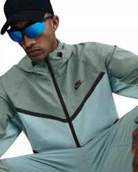 - Lightweight fabric moves sweat away from your skin for quick evaporation, helping you stay dry and comfortable. - Loose fit through the body allows a full range of movement. - Articulated elbows are made with movement in mind, and add a distinct Nike Tech aesthetic. - Hood and stand collar offer coverage from the elements. - Two-way zipper lets you adjust your fit. - Bungee cords with cord locks create a custom fit at the hem and hood. - Nike Futura logo - Body: 94% nylon/6% spandex. Pockets: 100% polyester. - Machine wash - Imported
