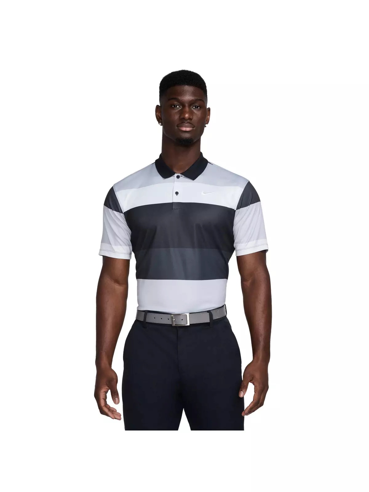 - Nike Dri-FIT technology moves sweat away from your skin for quicker evaporation, helping you stay dry and comfortable. - Soft knit material feels lightweight and breathable. - Embroidered Swoosh logo on chest - Ribbed collar - 100% polyester - Machine wash - Imported