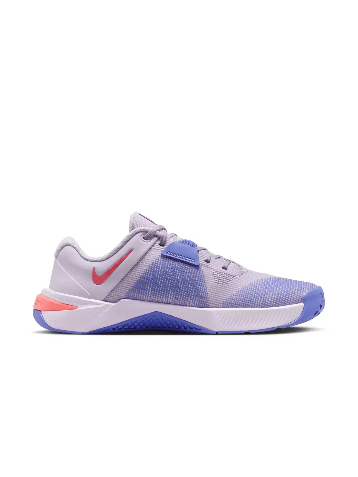 - An ultra-strong Hyperlift plate under your heel (where you need it most) optimizes stability for heavy lifts—like squats, dead lifts and cleans—without compromising the ride. A wider toe box compared to the Metcon 9 lets your toes extend outward and helps you optimize your power through your whole foot. - We updated the midsole with lightweight ReactX foam to increase energy return. It combines with flex grooves on the outsole to give you flexible, responsive cushioning when doing high-intensity exercises like box jumps and quick sprints. - A tough, sticky texture strategically placed on the midfoot and toe—high wear-and-tear areas—delivers game-changing grip and durability. A new traction pattern provides a flat, sticky surface for lifting on even the sweatiest of surfaces. - The midfoot band helps secure your foot onto the footbed when you pull on the laces. Combined with a sturdy heel cup and lace tuck, it allows you to focus on your form and not shifting or slipping. - Open-holed engineered mesh provides breathability. - Midsole rubber wrap is more tuned, lighter and less bulky than the Metcon 9. - Tough plastic heel clip provides durability for handstand push-ups.