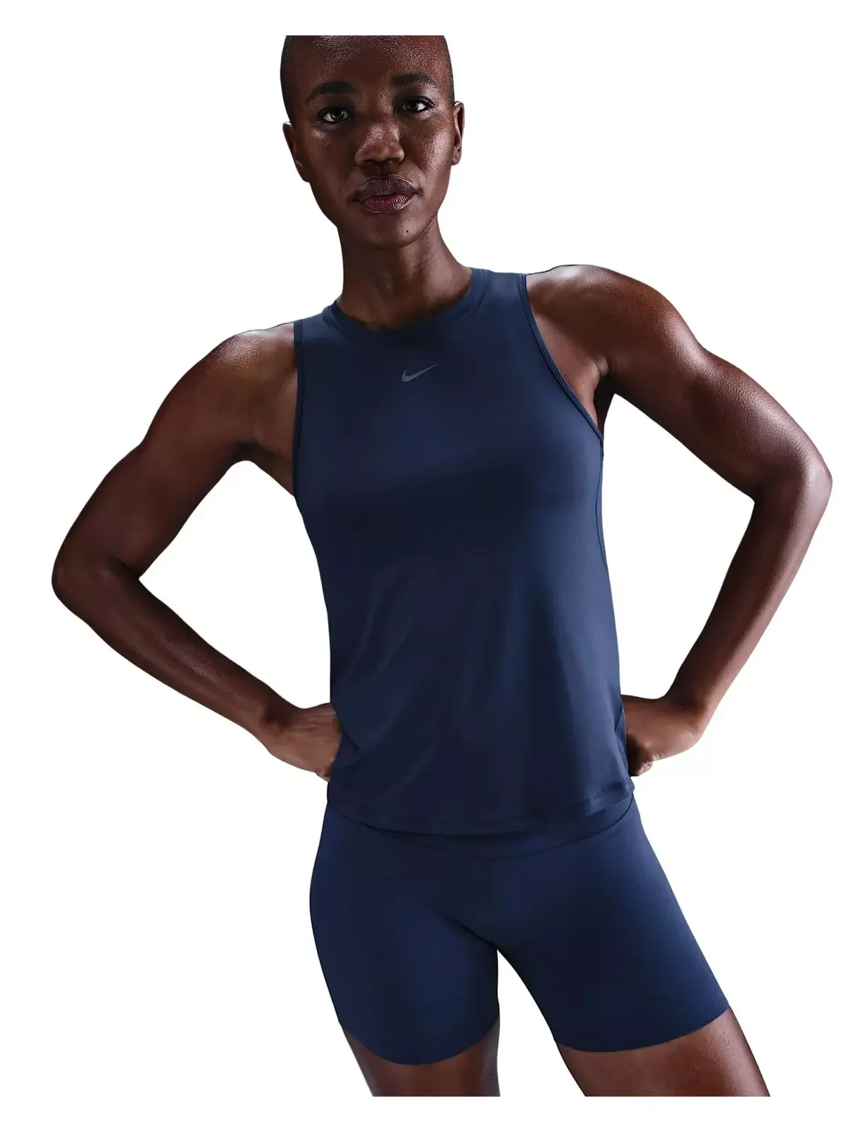 - A crew neckline adds a classic, timeless vibe to the tank. The curved hem and elegant seam lines throughout the design keep the look sleek, so you can wear it as the first layeraor the only layer. - Nike Dri-FIT technology moves sweat away from your skin for quicker evaporation, helping you stay dry and comfortable through all your activities. - 89% polyester/11% spandex - Machine wash - Imported - Reflective logo at center chest