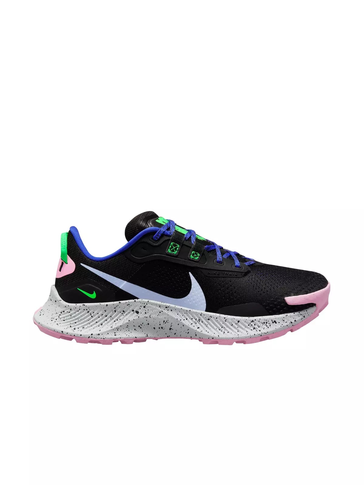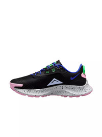 - A traditional collar and tongue bring the classic look of Pegasus to the trail. The shoe features responsive cushioning and support in the heel. Mesh in key areas on the upper make it breathable. - A dynamic band system around the midfoot gives you secure support as you tackle uneven paths. - The rubber sole features a shockwave-like pattern that mimics mountain biking tires. Nubs give you traction and a smooth ride between trails and the road. More traction at the heel and toe helps you stay secure when going up or downhill. - Nike React foam from heel to toe provides responsive and stable cushioning for comfort and smooth transitions on rocky terrain. - Pull tab at the heel for easy on and off.