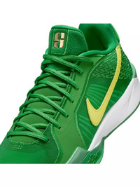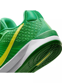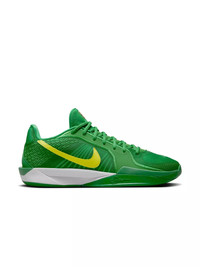 - Where Sabrina rose to stardom at the collegiate level just so happens to be where we got our start too. A tailwind-esque Swoosh design throws it back to the Bill Bowerman days while a time-honored green and yellow shout out Sabrina’s alma mater. - A forefoot Air Zoom unit gives you responsive pop and speed. The midsole has two types of foam: Our newest Cushlon foam gives you a plush underfoot sensation, so your feet feel fresh throughout the 4th quarter. A firmer Cushlon foam wraps around it to provide stability. - A dynamic internal midfoot containment system with a fit band and stitched cables allows you to control every movement once you lace up. - A modified herringbone pattern we’ve dubbed S-traction offers amazingly quick changes of direction on a dime. - Check out the bits of fragments around the Swoosh logo, an ode to the proverbial glass ceiling Sabrina continues to break through in the game of basketball. The embroidered S’s on the back half of the design pay homage to the dream-weavers who continue to strive to do more.