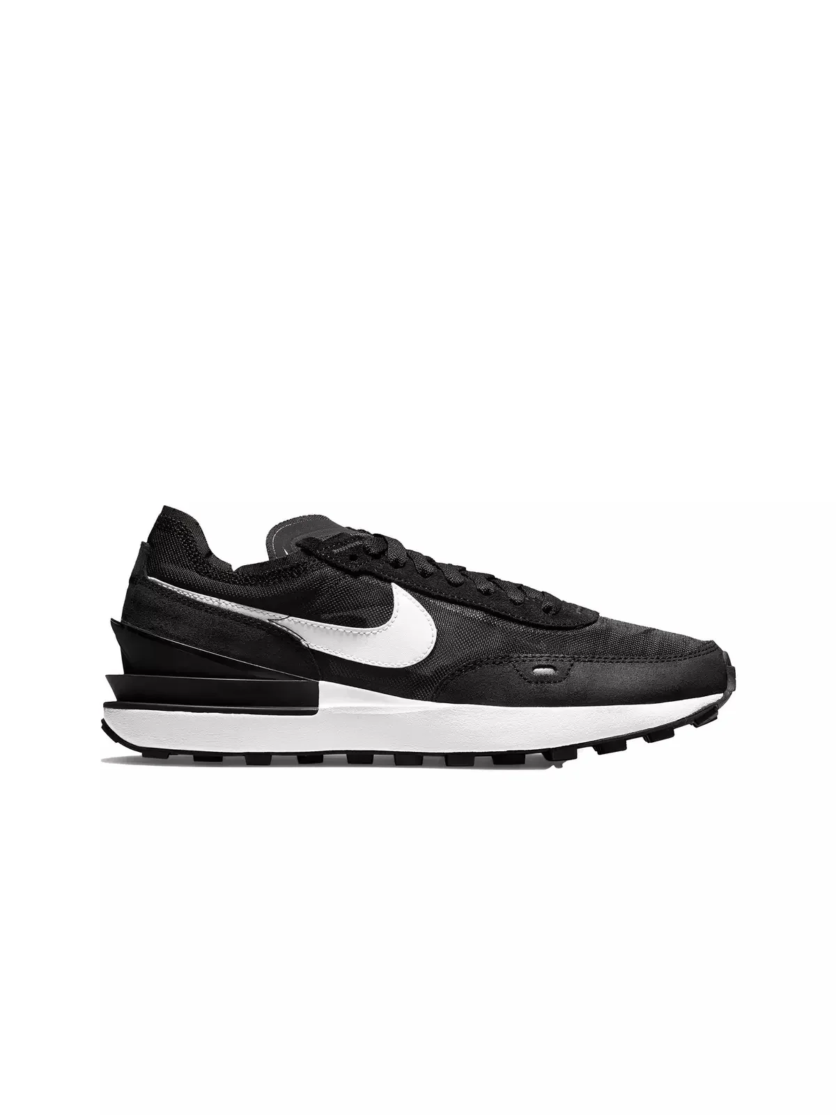 - Mixed upper features transparent mesh and soft suedes, adding dimension and texture to the shoe. - Dual stacked midsole keeps the classic wedge shape of the Waffle franchise for a soft, cushioned ride. - New TPU heel clip creates a dynamic look that adds support and energy while the stitching mixes DIY appeal with urban edginess. - Iconic rubber Waffle outsole has been updated with new molded lugs for added support, traction and durability. - The low-cut collar features soft edges for a sleek look that feels comfortable.