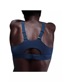 - 79% polyester and 21% spandex for soft stretch - Dri-FIT technology wicks away sweat to help keep you cool and dry - Quick-drying fabric keeps you dry - Sewn-in pads stay put for reliable coverage and protection - Adjustable straps provide a custom fit that stays in place - Jacquard chest band has a pinch-free stay-in-place fit - Adjustable Straps: Yes - Support: High