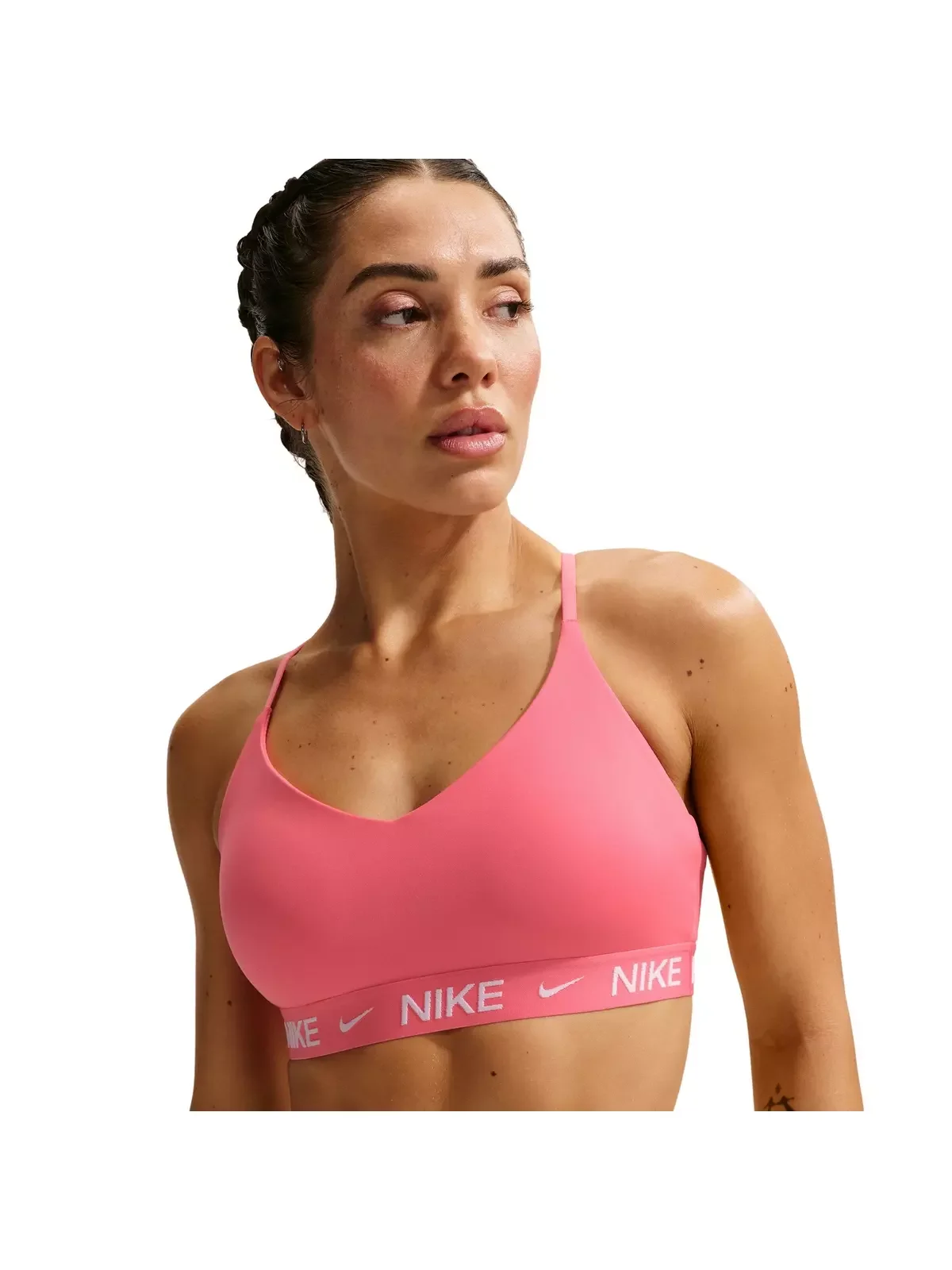 - Dial in your perfect fit with thin straps that easily adjust in the back. - Every day and every workout has different needs, and that's why we've updated the Indy bra to give you choices. - Nike Dri-FIT technology moves sweat away from your skin for quicker evaporation, helping you stay dry and comfortable. - Soft jacquard chest band sits snugly against your skin without pinching or binding. - Body: 78-79% polyester/21-22% spandex. Bottom hem: 53% polyester/28% nylon/19% spandex. Straps: 52% polyester/32% spandex/16% nylon. Lining: 84% polyester/16% spandex. Interlining: 80% polyester/20% spandex. Pad top fabric/Pad back fabric: 100% polyester. Pad: 100% polyurethane. - Machine wash - Imported