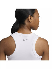 - Nike Dri-FIT technology moves sweat away from your skin for quicker evaporation, helping you stay dry and comfortable. - High neckline with racerback is designed to cover traditional sports bras. - 80% polyester/20% spandex - Machine wash - Imported - Reflective heat transfer Swoosh logo at center back