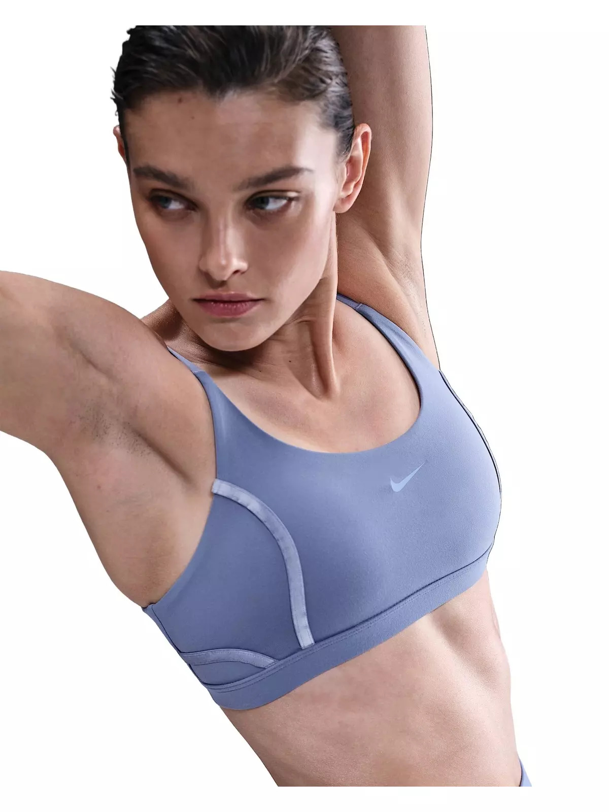 - Nike Dri-FIT technology moves sweat away from your skin for quicker evaporation, helping you stay dry and comfortable. - Midweight, peachy-soft fabric stretches with your every move and dries quickly. - Light support gives you a gentle hold with plenty of freedom that's great for low-impact workouts or all-day comfort. - Removable pads let you choose your coverage. - Adjustable straps - Body/Interlining: 80% polyester/20% spandex. Insets: 82% polyester/17% spandex/1% nylon. Lining: 84% polyester/16% spandex. Pad back fabric/Pad top fabric: 100% polyester. Pad: 100% polyurethane. - Machine wash - Imported