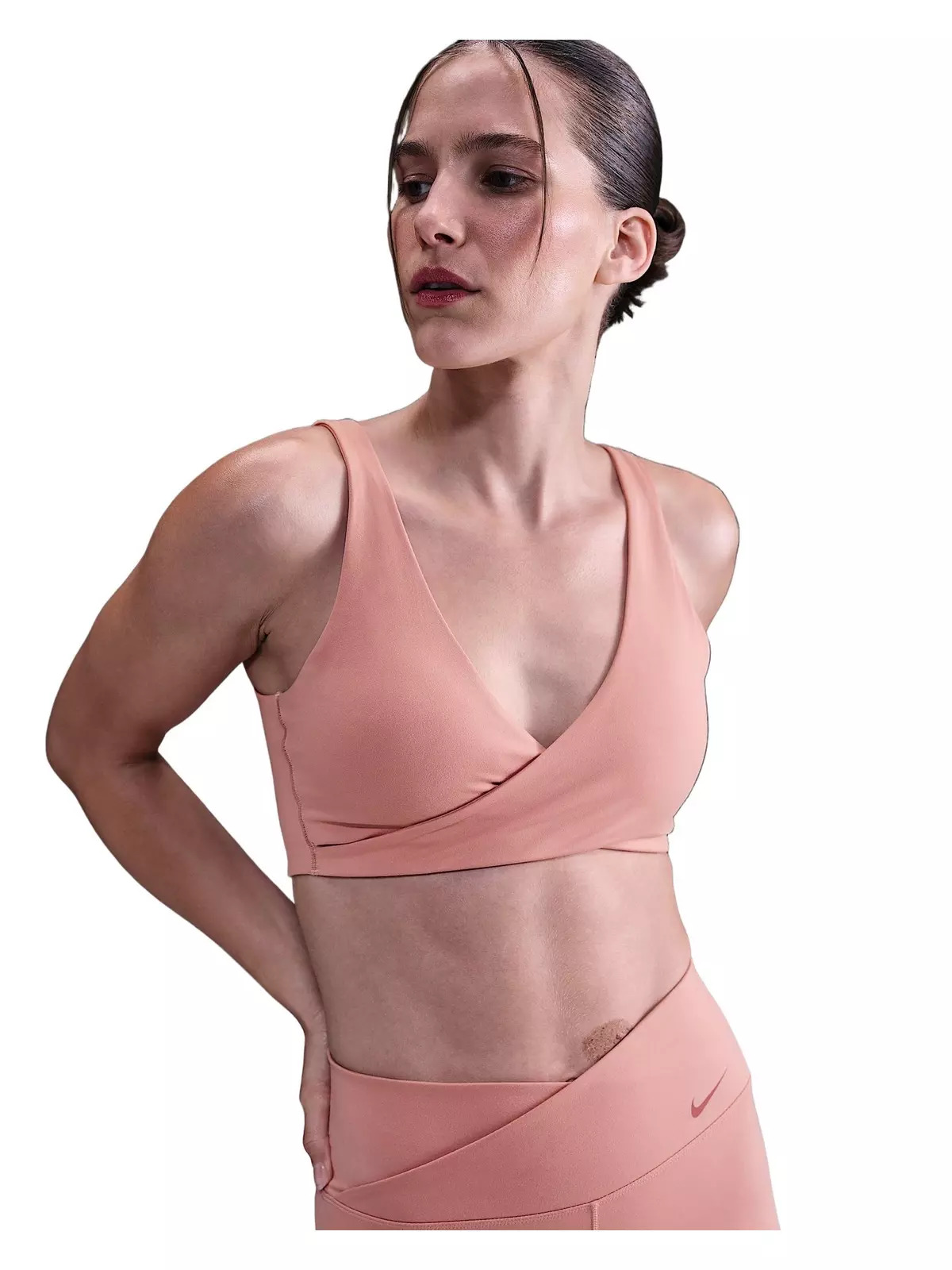 - Nike Dri-FIT technology moves sweat away from your skin for quicker evaporation, helping you stay dry and comfortable. - Removable pads let you choose your coverage. - Body/Interlining: 80% polyester/20% spandex. Lining: 88% polyester/12% spandex. Pad top fabric/Pad back fabric: 100% polyester. Pad: 100% polyurethane. - Machine wash - Imported