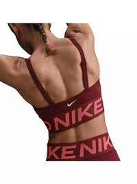 - Sleek, medium-support bra with Nike Pro tape logo underband - Deep, plunge neckline with cut-out above underband for maximum ventilation - Fully adjustable straps and removable padding for customizable look and fit - Nike Dri-FIT technology for all-day moisture management - 72% Polyester and 28% Spandex Lining: 88% Polyester and 12% Spandex - Imported