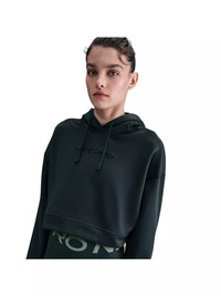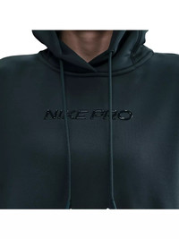 - Unapologetic, confident style goes with anything. From leggings to tops to more, Nike Pro rounds out your wardrobe with pieces that help you stand out. - Nike Therma-FIT technology helps manage your body’s natural heat to help keep you warm in cold-weather conditions. - Inspired by pump covers, the Nike Pro elastic on the back hem pulls up for ventilation and style. Its specially designed drawcord with silicone holders at the ends can store certain earbuds. - Swoosh logo on sleeve - Nike Pro branding at chest - Thumbholes on sleeves - Body: 91% polyester/9% spandex. Hood Lining: 75% polyester/13% cotton/12% rayon. - Machine wash - Imported