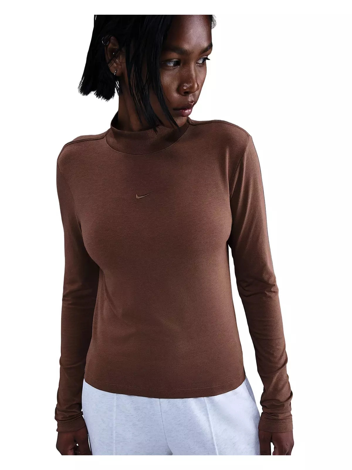 Women's Sportswear Chill Knit Slim Long-Sleeve Mock-Neck T-Shirt -Brown