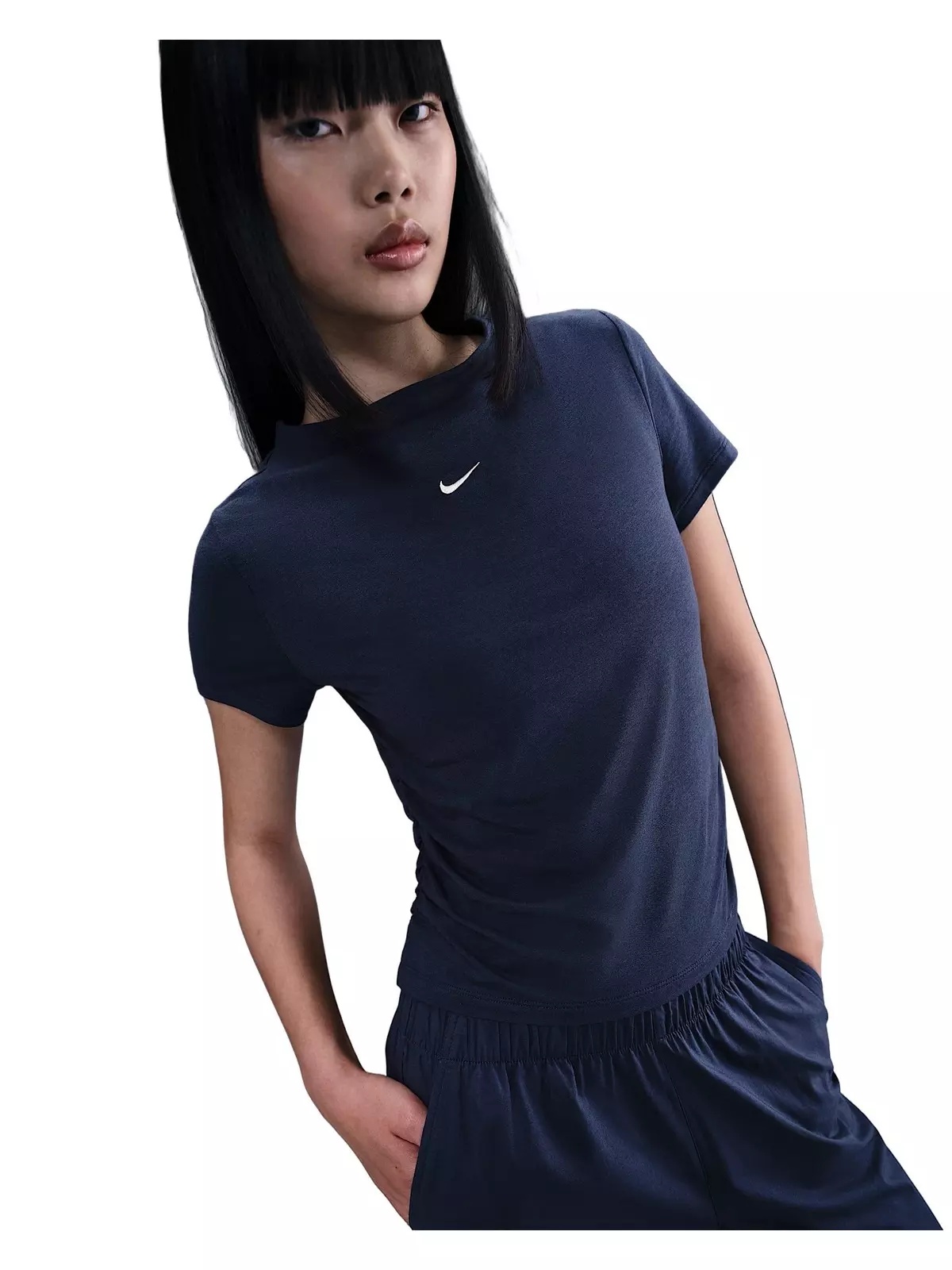 Women's Sportswear Chill Knit Tight Short-Sleeve Mock-Neck Top -Navy