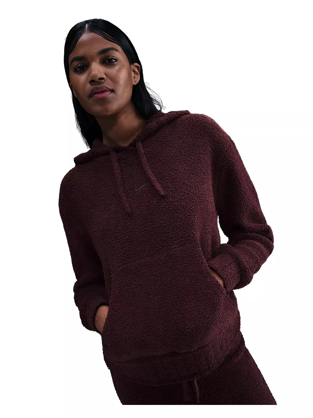 - Cover yourself in luxurious bouclA©aour soft heavyweight knit that helps keep you warm and cozy. - Dropped shoulders and room through the body give you a loose fit. - 99% polyester/1% spandex - Drawstring - Self ribbing at hem and cuffs - Kangaroo pocket - Embroidered Swoosh logo - Machine wash - Imported