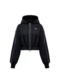 Women's Sportswear Phoenix Fleece Loose Cropped Full-Zip Hooded Jacket - Black