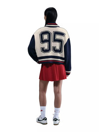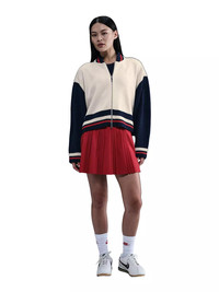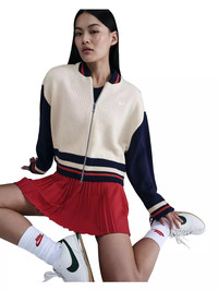 - 2-way zipper gives you extra versatility when styling. - Dropped shoulders and extra room through the body give you an oversized fit. - 98% acrylic/1% spandex/1% polyester - Striped ribbing at neck, hem and cuffs - Oversized fit - Embroidered Swoosh logo - Hand wash - Imported