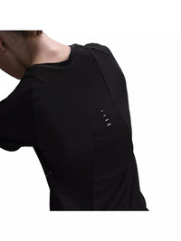 - Modified raglan sleeves with the optimal length are designed to help reduce underarm chafing and allow for a wider range of motion. - Nike Dri-FIT technology moves sweat away from your skin for quicker evaporation, helping you stay dry and comfortable. It combines with a large mesh panel on the back that helps moisture escape. - The top is tapered around the waist so that layering with other pieces is easier. Plus, a curved hem helps keep you covered through your stride. - Reflective Swoosh logo on left chest - Reflective graphics on sides and back - Not intended for use as Personal Protective Equipment (PPE) - Body: 88% polyester/12% spandex. Mesh: 100% polyester. - Machine wash - Imported