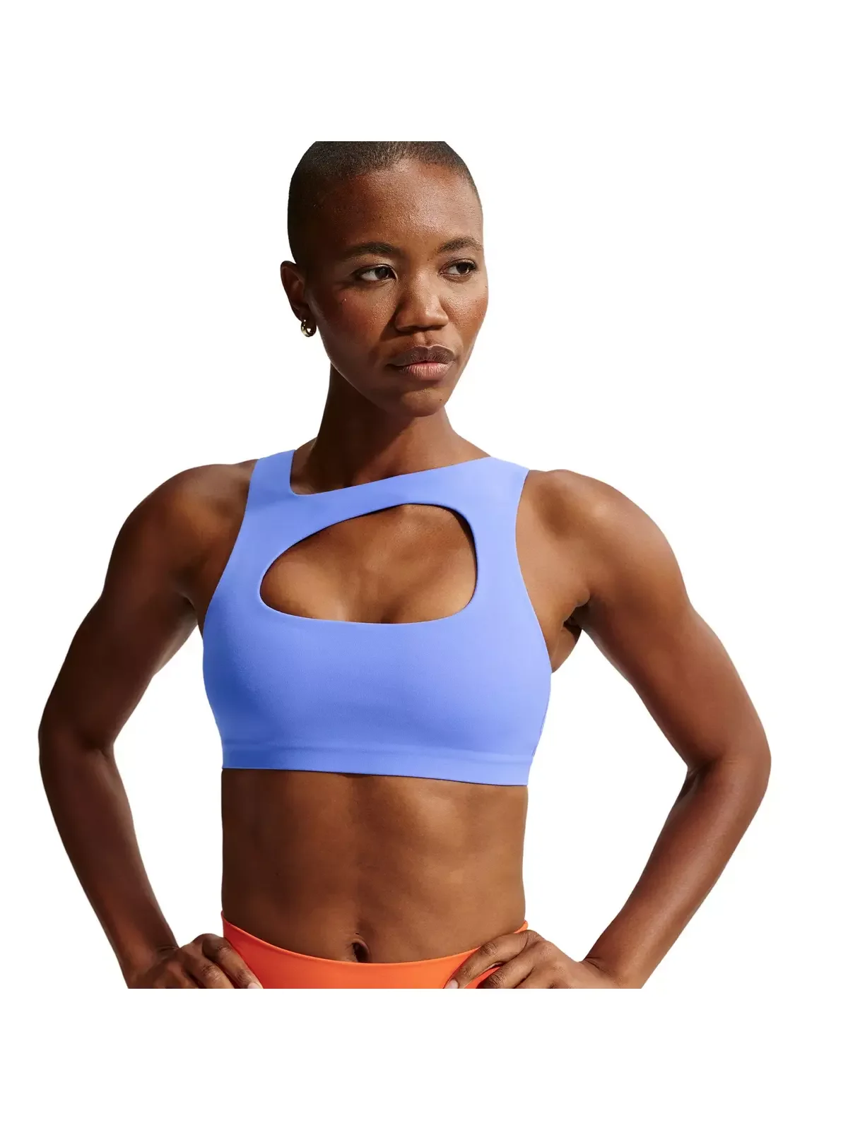 - Nike Dri-FIT technology moves sweat away from your skin for quicker evaporation, helping you stay dry and comfortable. - Light support gives you a gentle hold with plenty of freedom. - Lightweight, breathable lining offers subtle coverage. - Keyhole design helps add ventilation. - Body: 69% nylon/31% spandex. Lining: 88% polyester/12% spandex - Machine Wash - Imported
