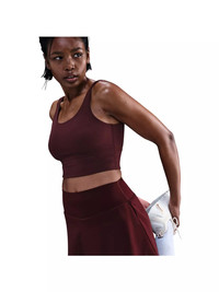 Women's Zenvy Rib Light-Support Padded Longline Sports Bra -Burgundy