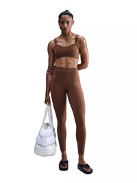 - Light support gives you a gentle hold with plenty of freedom that's great for low-impact workouts or all-day comfort. - Nike Dri-FIT technology moves sweat away from your skin for quicker evaporation, helping you stay dry and comfortable. - Body: 63% nylon/37% spandex. Front and back liner: 82% polyester/18% spandex. Pad: 100% polyurethane. Pad back fabric: 100% polyester. - Machine wash - Imported