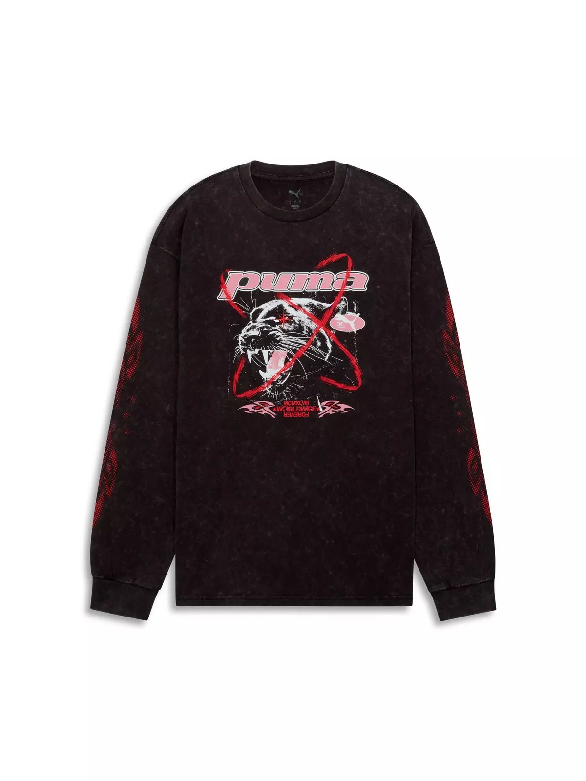 PUMA Women's PUMATECH-X Washed Oversized Long-sleeve Sweatshirt -Black