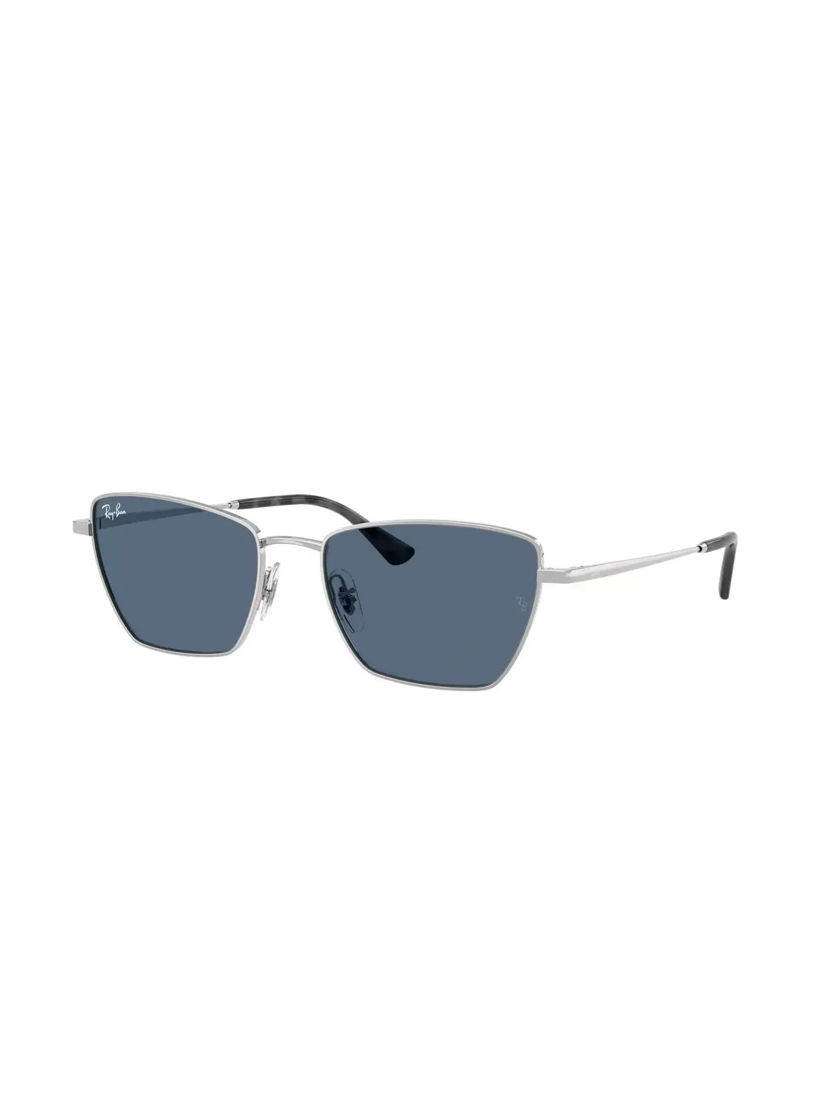 - Frame Shape: Irregular - Frame Color: Polished Silver - Frame Material: Metal - Lens Color: Dark Blue - Treatment: Solid Color - Face Coverage: Petite - Bridge & Nosepads: Adjustable Nose Pads