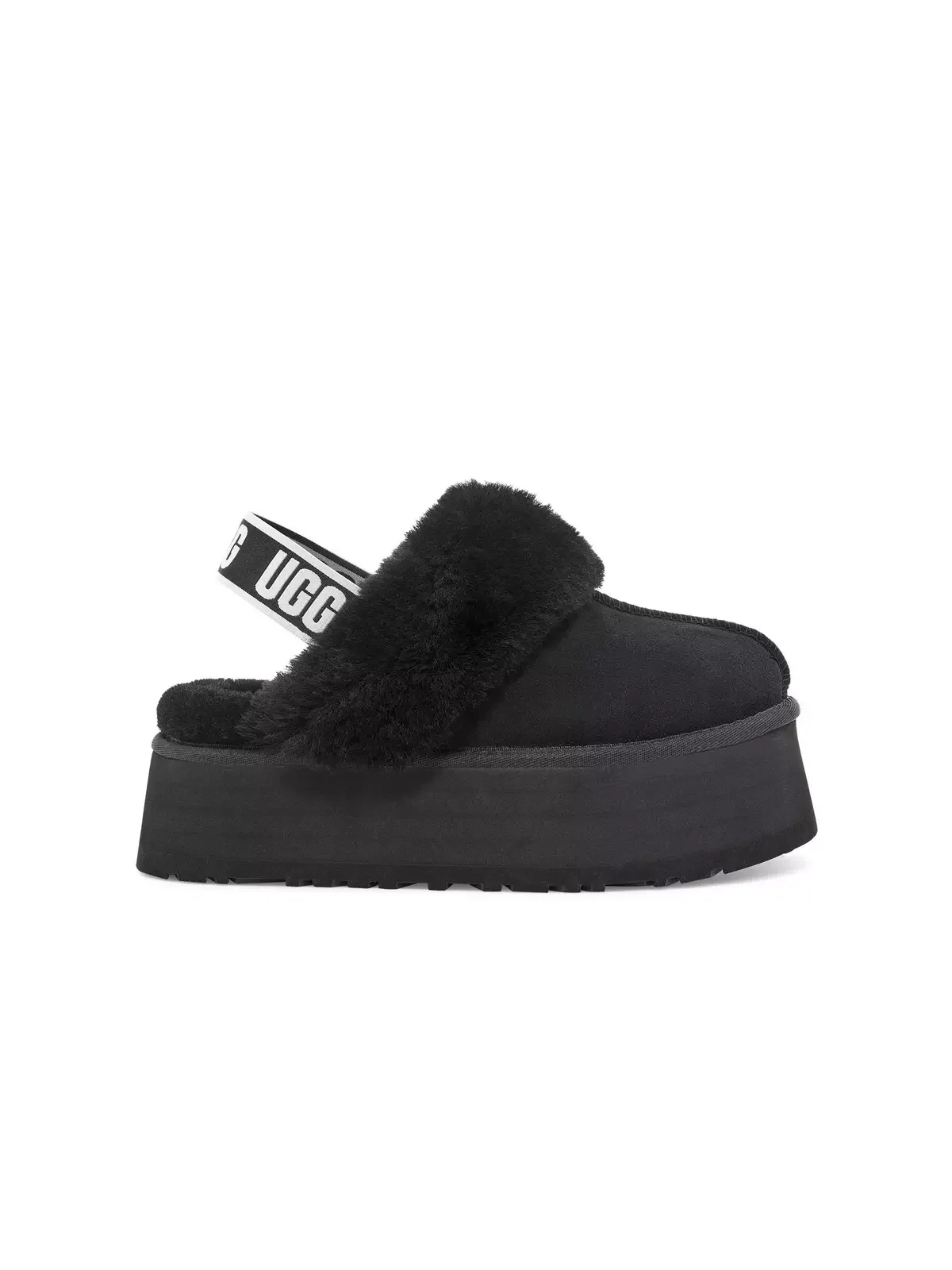 - Suede upper - Sheepskin collar - Elastic strap with UGGA® graphic - 10mm sheepskin lining - 10mm sheepskin insole - EVA midsole - SugarSolea¢ outsole, made with ethylene from sugarcane, or Treadlite by UGGa¢ made with petroleum-based ethylene - Polyester binding or textile binding made from 100% recycled polyester fibers - 2" heel height - Woven label with UGGA® logo on insole - RN 88276 - This product contains real fur from sheep or lamb. Fur may be sourced from Australia, Ireland, the United Kingdom, or the United States. It has been artificially dyed and treated.
