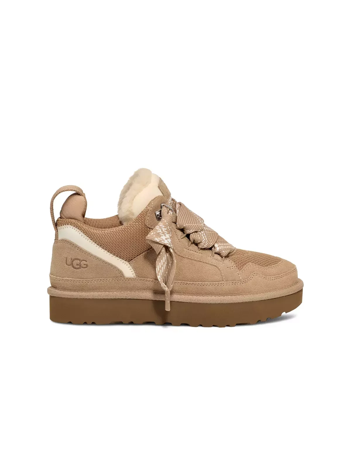 - Recycled ballistic canvas mesh, Suede upper - Webbing heel strap, UGGA® logo patch, Padded collar, Oversized padded tongue - Laces made from 100% UNIFI recycled polyester fibers, Two-tone flat lace - Polyester mesh lining made from 55% coffee charcoal modified polyester and 45% regular polyester, 10mm UGGplusha¢ 60% upcycled wool, 40% lyocell lining - 10mm UGGplusha¢ 60% upcycled wool, 40% TENCELa¢ Lyocell insole - EVA footbed - Sugarcane EVA outsole - Embossed UGGA® logo - Additional set of laces included
