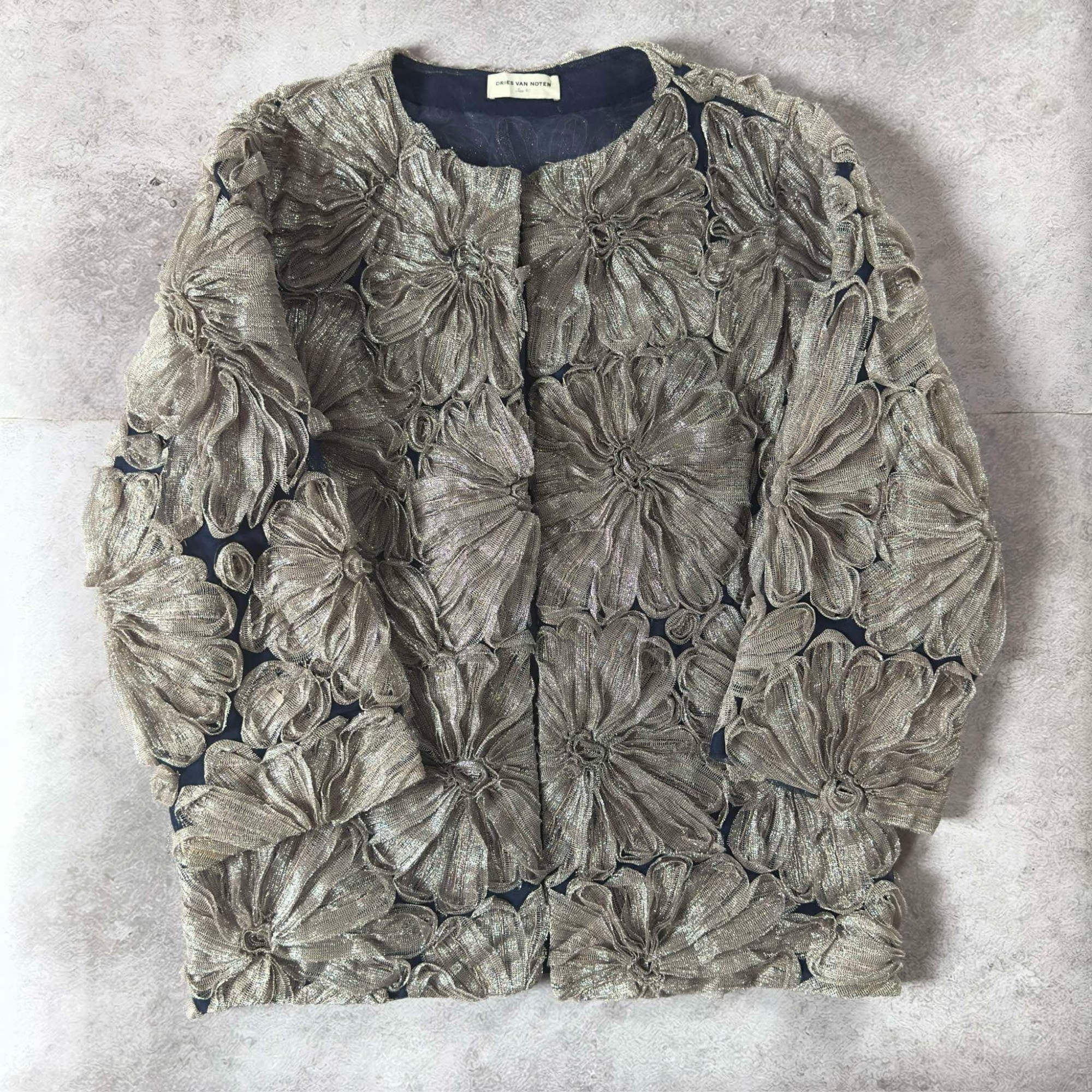 Dries Van Noten Silk Floral Embellished Handsewn Cardigan