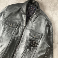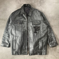 Phat Farm Hip hop Steer hide Genuine leather jacket *Needs zipper replacement Dimensions: Height or body length - 34 Inches Width or pit to pit - 33 Inches Sleeve length - 29.5 Inches