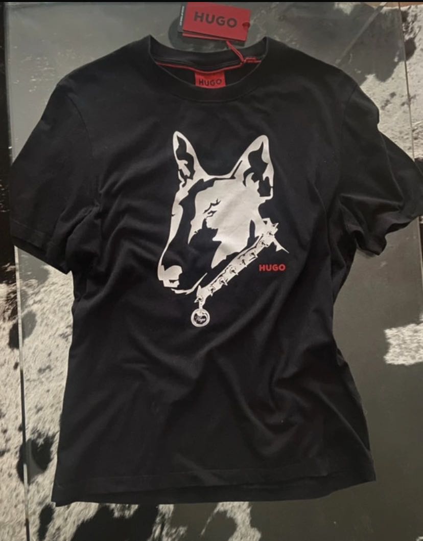 Hugo Boss red label (trend fashion line) Relaxed fit ´´hugo bull terrier dog with hugo tag´´ on front Red piping detail below the neck tape. Standard length Model Size: Size S 100% organic cotton Unisex #brand #exclusive #limitededition #limited #fashion #topfashion #collection #season #tshirt #blacktshirt #logoshirt