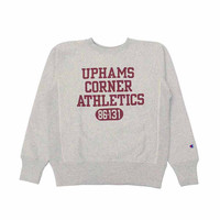 - This is a crew neck sweatshirt from the "REVERSE WEAVE 11.5oz. Terry Fleece" series. This series' sweatshirts are made of fabric with brushed lining, using the "REVERSE WEAVE" manufacturing method, which is synonymous with "THE KING OF SWEATSHIRTS" of "Champion". "Reverse Weave" is that the fabric originally used in the vertical direction is used in the horizontal direction to prevent vertical fabric shrinkage, and at the same time, "EXPANSION GUSSET" on both underarms is adopted to reduce the influence of horizontal shrinkage and to allow for ease of movement. It has an authentic silhouette, and the name tag uses the commonly known "blue single-color tag" which was used in 1970s products. - Main: 90% Cotton / 10% Polyester - Rib: 100% Cotton - Reverse Weave Sweatshirt - Brushed Lining - Flat-seamer sewing for Underarm - Made in Cambodia - Model Wearing Size: M (Height 170cm / Weight 52kg)