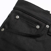 - Lean Dean DRY EVER BLACK from "Nudie Jeans". "Lean Dean" is the elegant tapered fit jeans with deep-rise, zipper-fly, and sharply tapered from the thighs to the hem. It is made of 12oz non-washed stretch black denim (*the beautiful black denim that won't fade after 40 washes). These pants are unwashed, so they will shrink by washing. Also, everything from the fabric to the sewing threads is all black for a cool look. - *It depends on the washing method. - Main Fabric: 12oz.Organic Cotton Stretch Black Denim - 99% Cotton / 1% Polyurethane - Made in Tunisia - Model Wearing Size: W30 (Height 170cm / Weight 52kg) *Before Washing